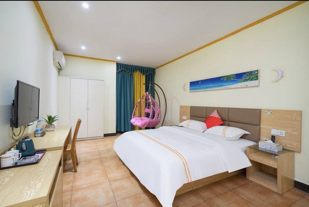 臻享阳光大床房[❤️房间每日消毒+房间有厨房制作美食+楼下美食街+自助洗衣❤️]