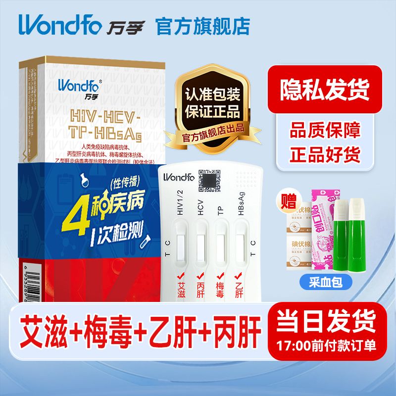 艾滋病检测试纸四合一【万孚】人类免疫缺陷、丙型肝炎病毒梅毒螺旋体抗体乙型肝炎病毒表面抗原联联合检测试剂1人份/盒